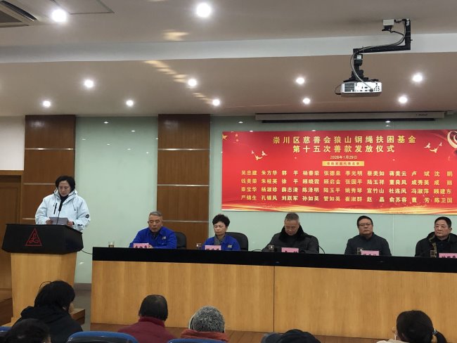狼山钢绳扶困基金第十五次善款发放仪式2026年1月29日在公司五楼报告厅举行,共计发放善款20万元